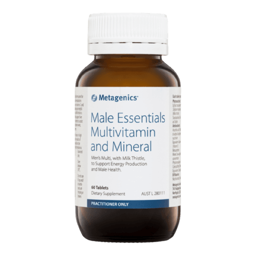 - Male health: Male Essentials is a comprehensive multivitamin and mineral formula, a source of sterols to support several aspects of male health. Male Essentials provides 20 mg of zinc per tablet to assist in the maintenance of healthy hormone metabolism. Zinc is concentrated in the male reproductive system, particularly in the prostate. Zinc also assists in the maintenance of healthy hair. In vitro studies have shown zinc to reduce the production of the androgen di-hydro testosterone (DHT). Male Essentials is formulated to assist energy production, maintain healthy cognition and brain function.